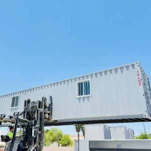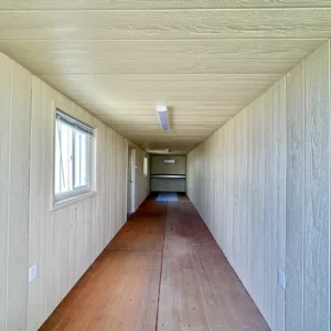 En 40 fods kontorcontainer er et oplagt valg, når der er behov for ekstra og rummelig kontorplads. Indrettet med skriveborde giver den komfortabel arbejdsplads til 2–3 personer med god bevægelsesfrihed.
