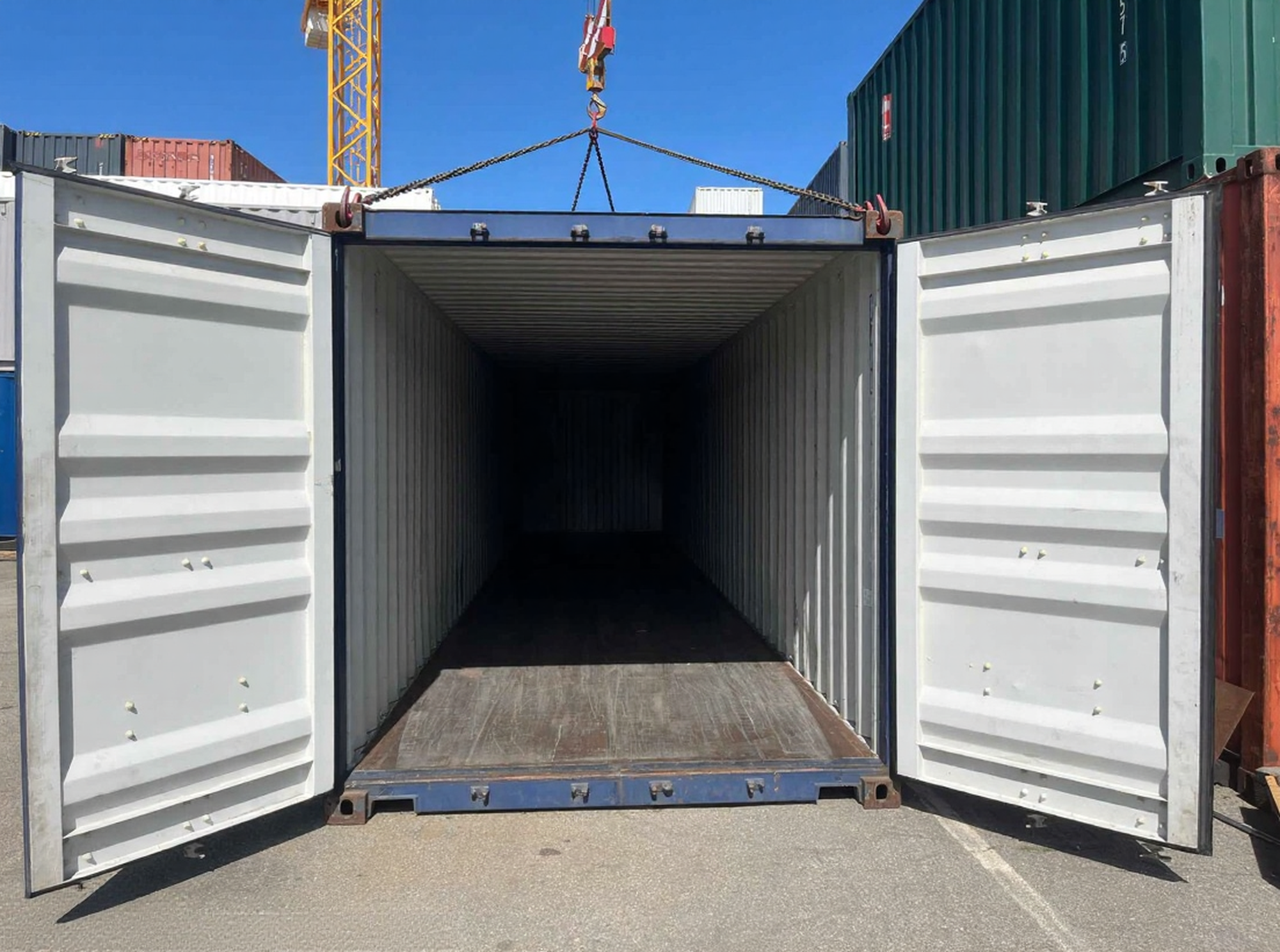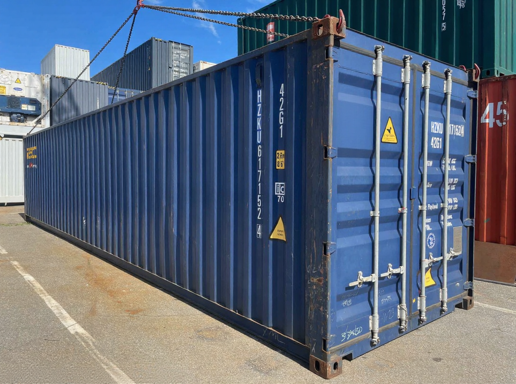 Robust og alsidig 40 fods skibscontainer, designet i henhold til ISO-standardmål. Konstruktionen i højstyrkestål garanterer holdbarhed, sikkerhed og pålidelighed til både transport og opbevaring.