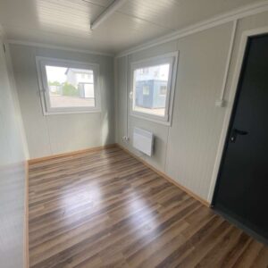 Dieser kompakte Bürocontainer von 4,00 × 2,20 m bietet eine hochwertige, thermisch isolierte und sofort einsatzbereite Lösung für Baustellen, Gewerbe, Industrie und temporäre Arbeitsbereiche.