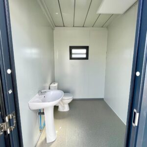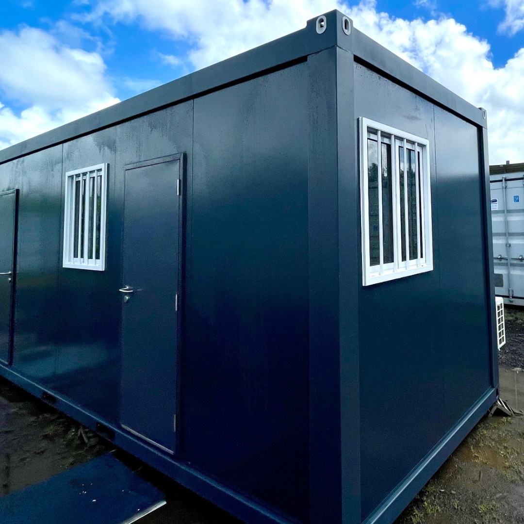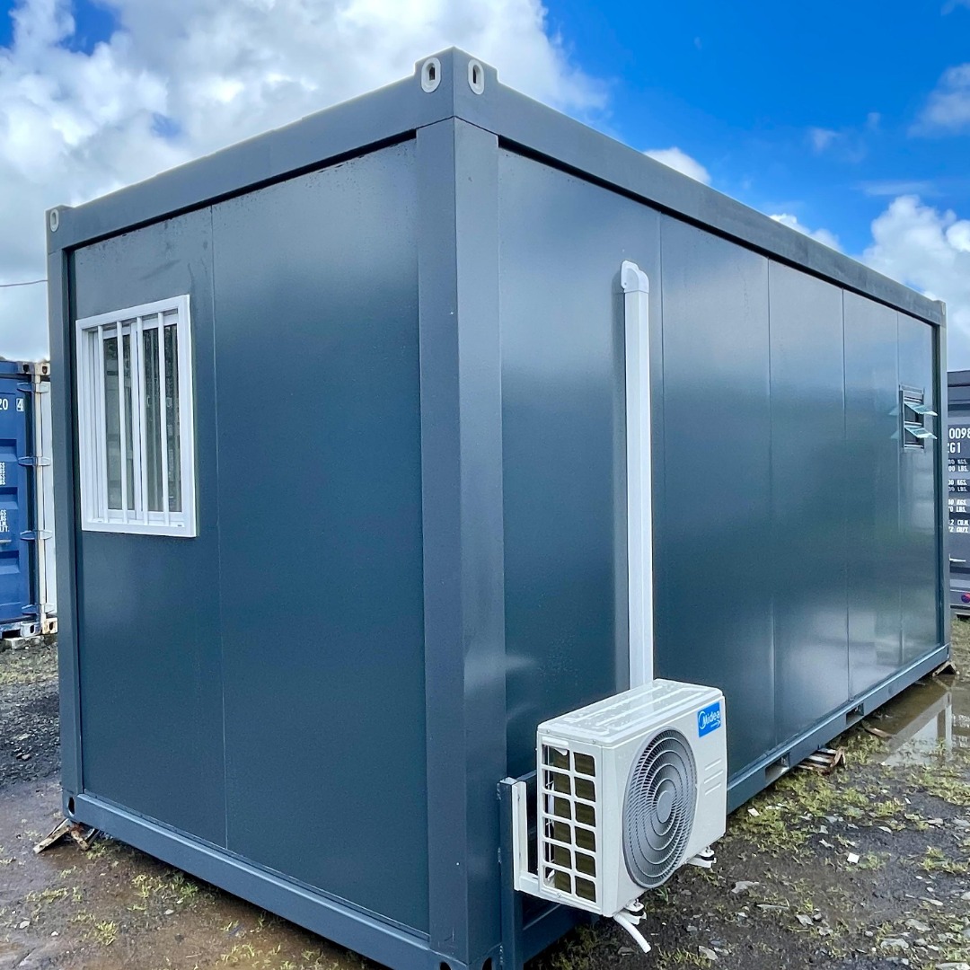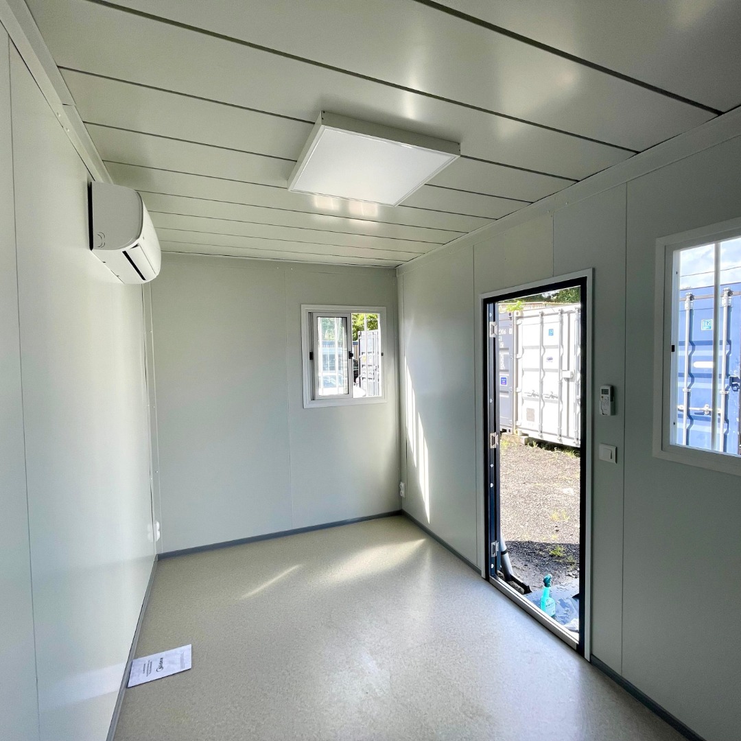 Dette modulopbyggede kontor på 15 m² med integrerede sanitære faciliteter er en ideel løsning for professionelle, der søger et uafhængigt, praktisk og hurtigt operationelt rum.