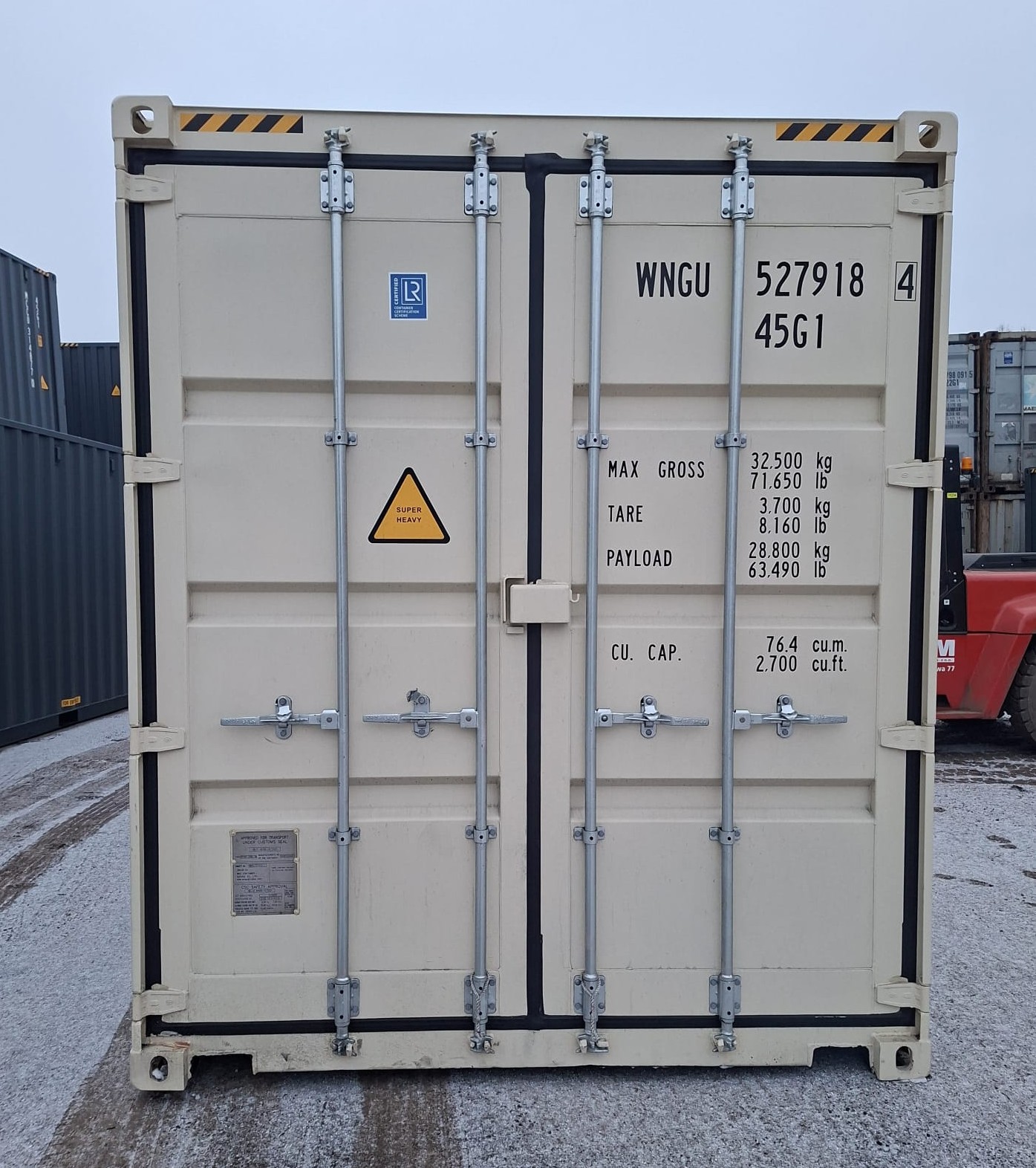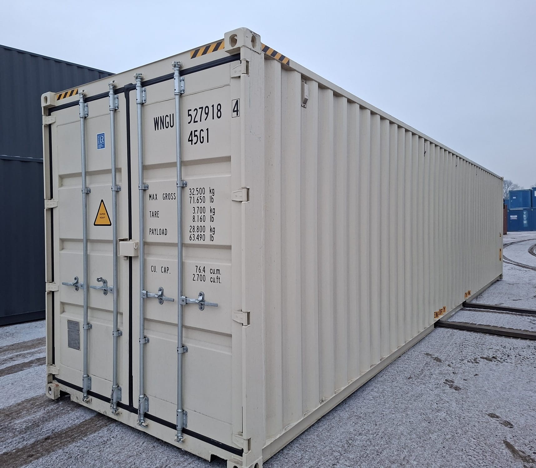 Få en ny 40 fods High Cube-container (første rejse), der er ideel til sikker opbevaring eller dine indretningsprojekter.